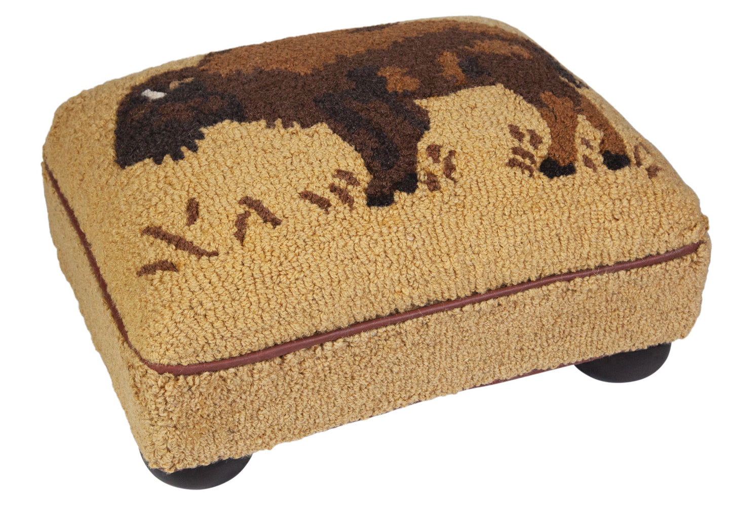 - Our Buffalo On Gold - 14" x 18" x 9" Foot Stool has been made with exceptional care by skilled craftsmen with natural wool and cushioning that provide a comfortable experience for your feet or while sitting. The result is a premium decorative heirloom that adds a charming touch of handcrafted excellence to bedrooms, living rooms, dens, and more.