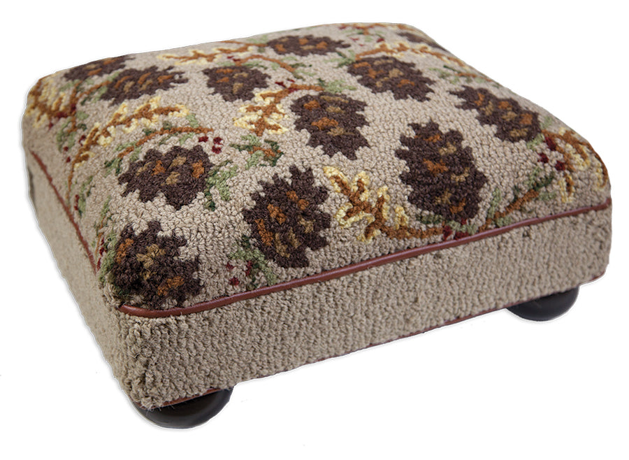 - Our Cones Northwoods - 14" x 18" x 9" Foot Stool has been made with exceptional care by skilled craftsmen with natural wool and cushioning that provide a comfortable experience for your feet or while sitting. The result is a premium decorative heirloom that adds a charming touch of handcrafted excellence to bedrooms, living rooms, dens, and more.