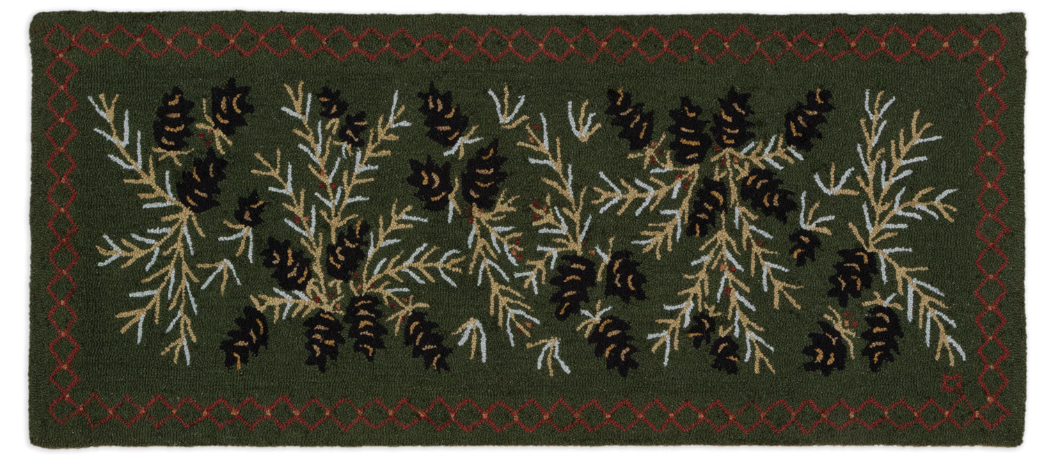 - Our Diamond Pine - 2.5' X 6' Runner Rug wool pillow has been hand-hooked with exceptional care by skilled craftsmen. The result is a premium decorative pillow that adds a charming touch of handcrafted excellence to any bed, sofa, or rocking chair.