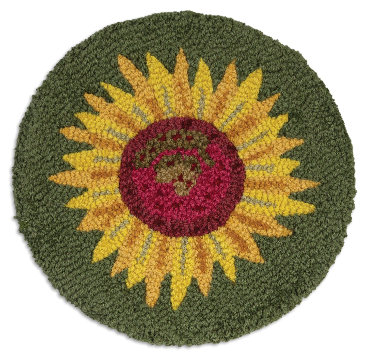 - Our Sunflower - 14" Round Chair Pad is made with 100% natural wool that is hand-hooked with exceptional care by skilled craftsmen. The result is a premium decorative seat cover that adds a charming touch of handcrafted excellence to kitchen and dining room chairs, as well as rocking chairs and wood-based seating in family rooms, dens, and living rooms.