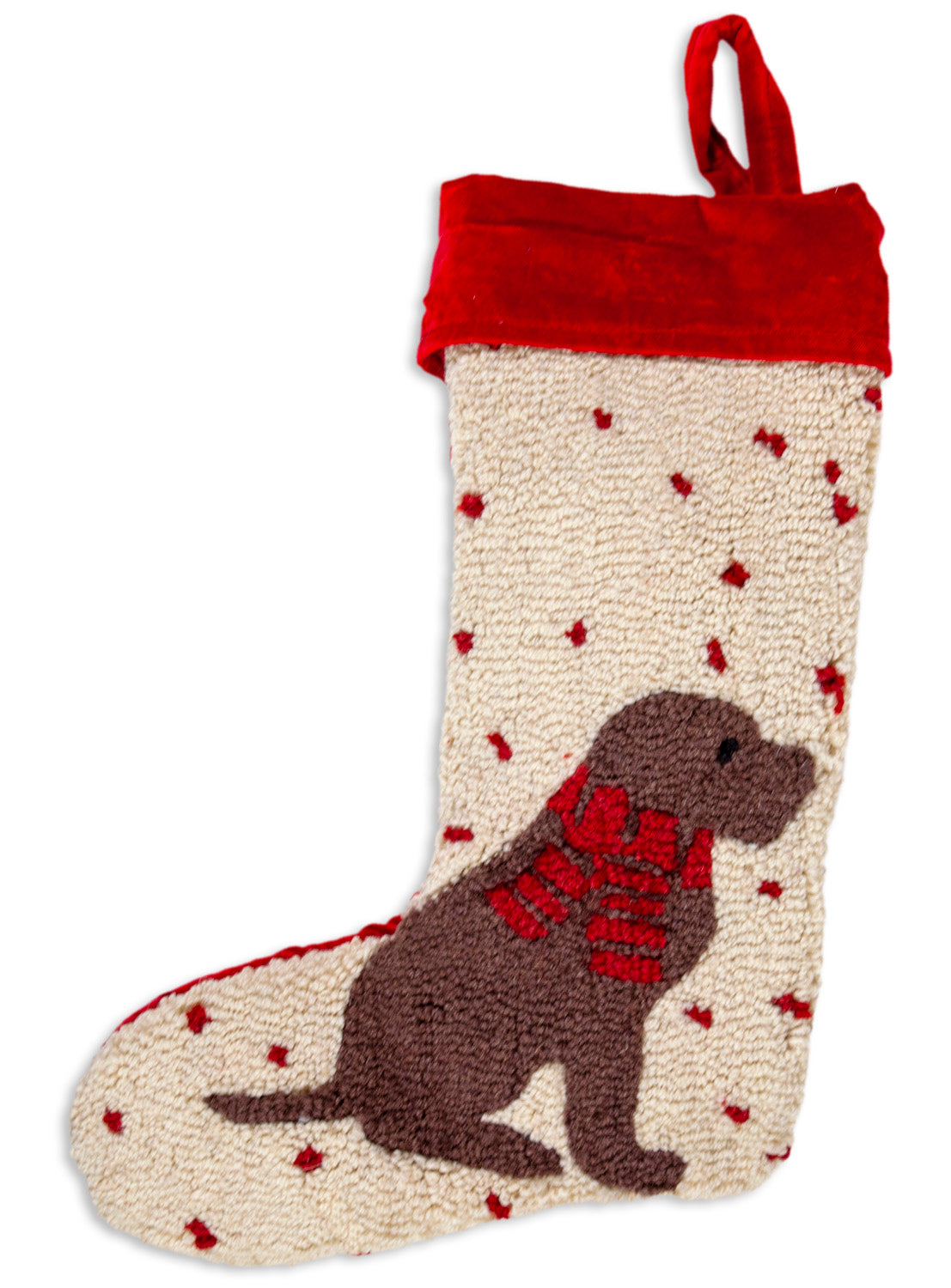 - Our December Chocolate Lab - 9" x 20" Christmas Stocking is a beautiful and festive Christmas hand-hooked wool stocking-perfect for anyone looking to bring joy and cheer to their home during the holiday season.