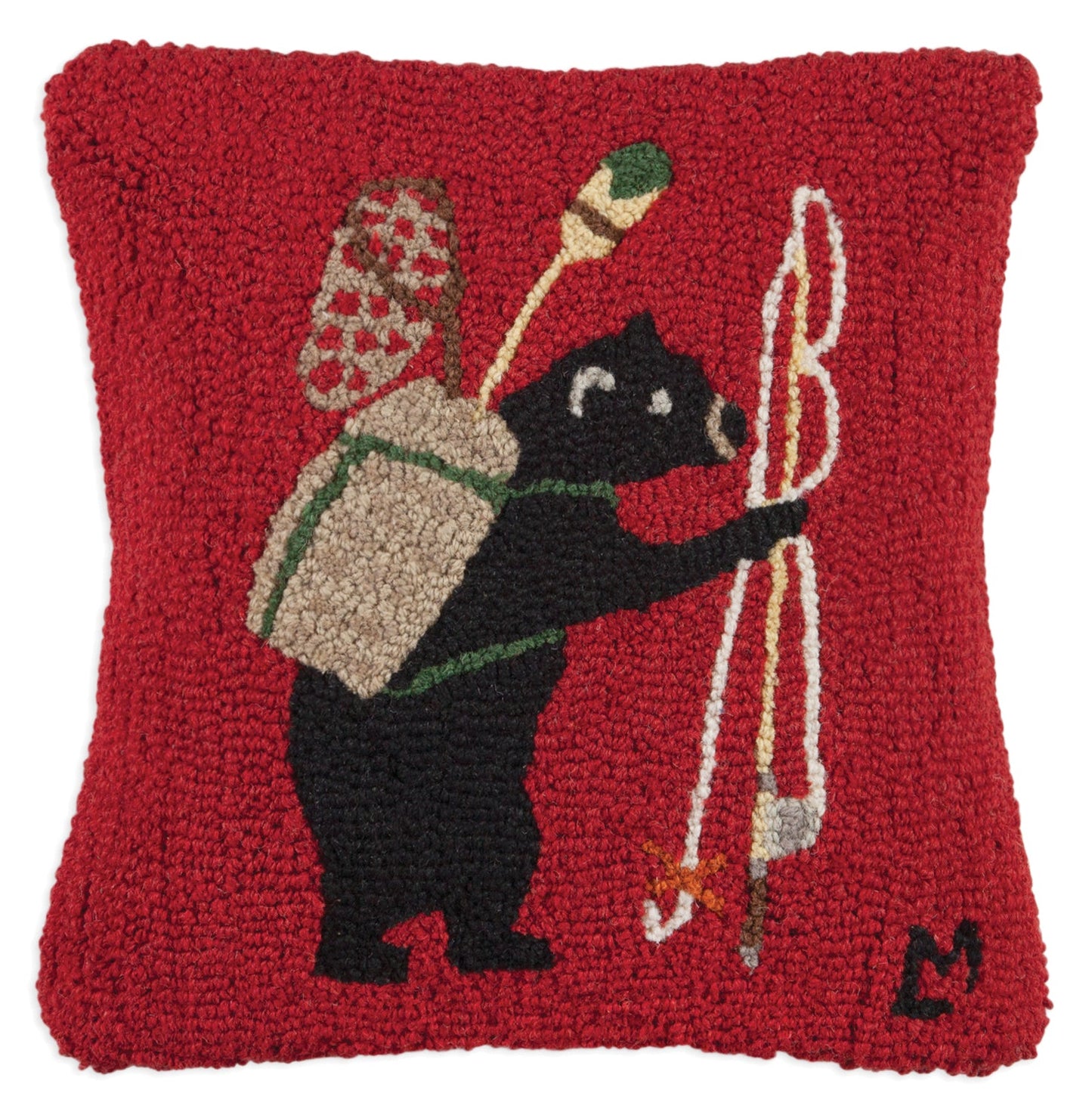 - Our Bear Essentials - 18" x 18" wool pillow has been hand-hooked with exceptional care by skilled craftsmen. The result is a premium decorative pillow that adds a charming touch of handcrafted excellence to any bed, sofa, or rocking chair.