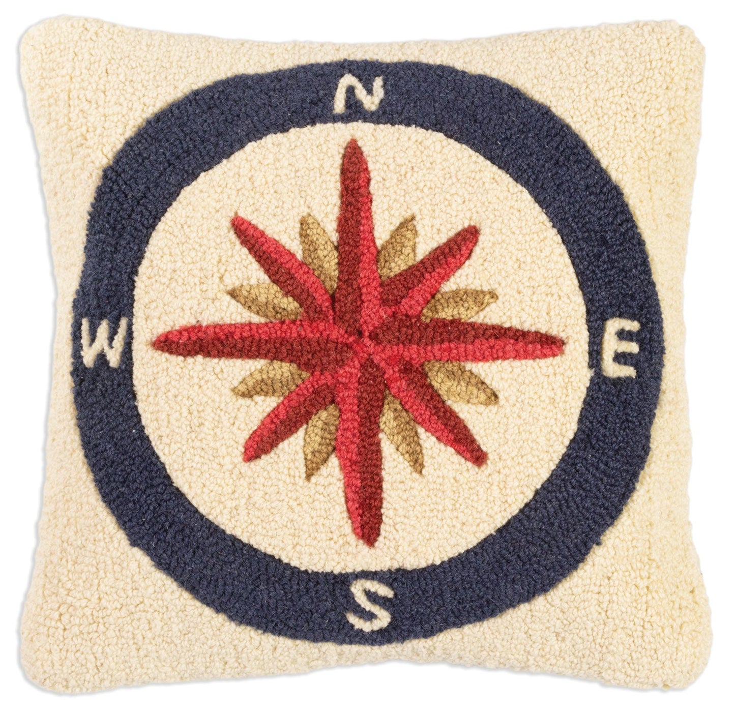 - Our Compass Rose - 18" x 18" wool pillow has been hand-hooked with exceptional care by skilled craftsmen. The result is a premium decorative pillow that adds a charming touch of handcrafted excellence to any bed, sofa, or rocking chair.