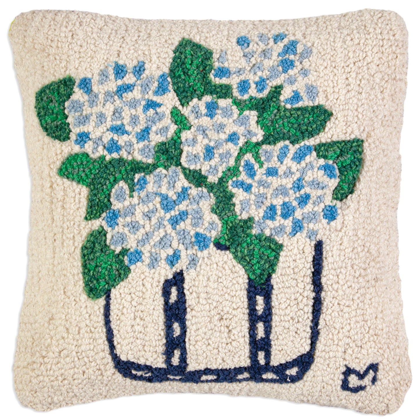 - Our Hydrangea Tote - 18" x 18" wool pillow has been hand-hooked with exceptional care by skilled craftsmen. The result is a premium decorative pillow that adds a charming touch of handcrafted excellence to any bed, sofa, or rocking chair.