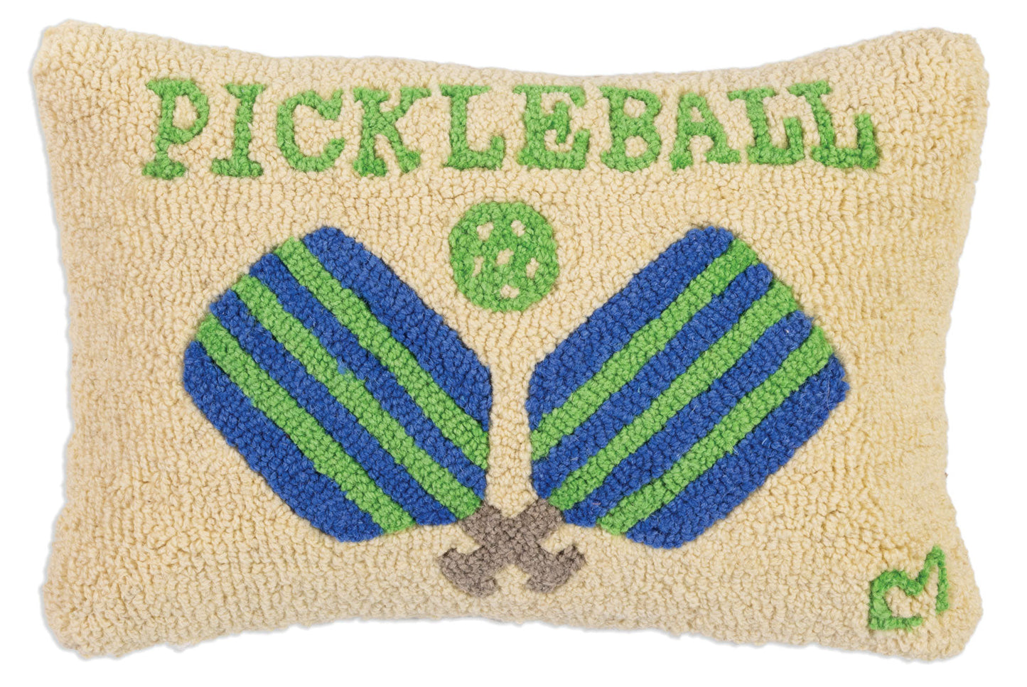 - Our Pickle Ball - 12" x 18" wool pillow has been hand-hooked with exceptional care by skilled craftsmen. The result is a premium decorative pillow that adds a charming touch of handcrafted excellence to any bed, sofa, or rocking chair.