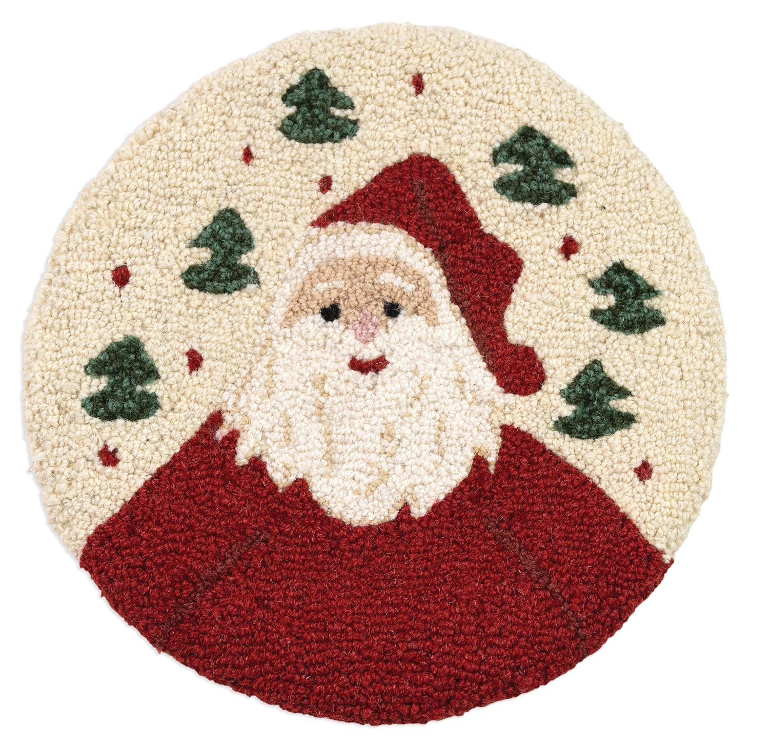 - Our Jolly Ole Santa - 14" Round Chair Pad wool pillow has been hand-hooked with exceptional care by skilled craftsmen. The result is a premium decorative pillow that adds a charming touch of handcrafted excellence to any bed, sofa, or rocking chair.